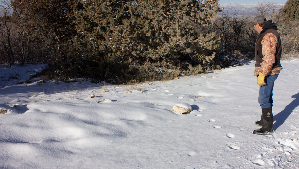Half the fun and much of the success of hound hunting comes from working as a team. In Bob's case, he and his partners break up in the morning to scout out different canyons in the area. When Bob or one of his partners finds a track, the rest are notified. No one lets his dogs loose until everyone arrives.